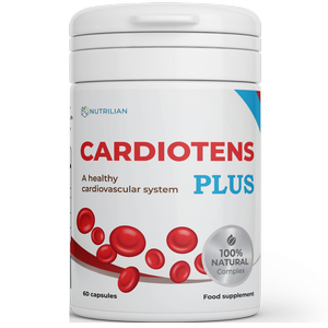 Ingredients (1 capsule): bulking agent: microcrystalline cellulose, gelatine. Hawthorn extract (Crataegus monogyna) leaf and flower extract 4:1, Lemon balm extract (Melissa officinalis) extract 4:1, Garlic extract (Allium sativum) extract (1% allicin), caking agents: magnesium salts of fatty acids. Vitamin B6 (pyridoxine hydrochloride), Vitamin B1 (thiamine hydrochloride).